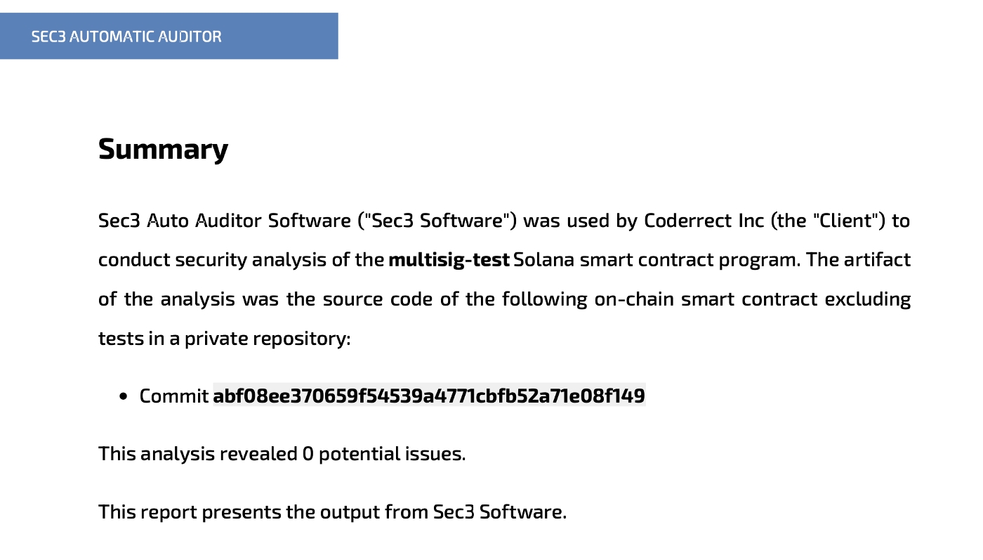 An “auto-audit” certificate will be generated by sec3 X-ray when no issues are found. Click “Download Certificate”, and a certificate pdf will be downloaded: